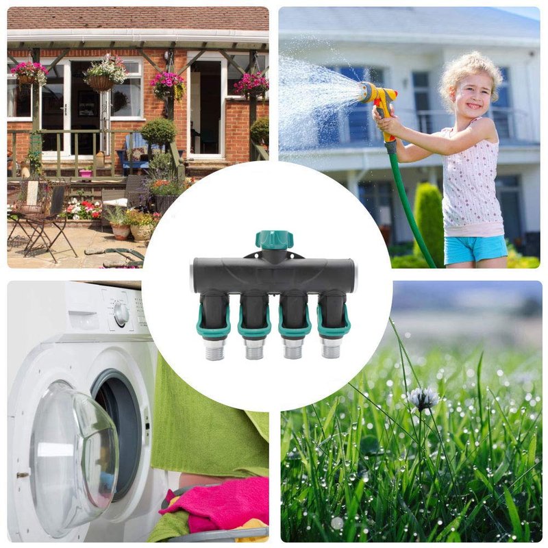 - 🌿EASY TO INSTALL: Garden hose 4 distributor through raw material belt firmly twisted to the tap. Then just connect the garden hose nozzle to the bottom of the distributor and use it with four connection adapters, which is convenient and fast.