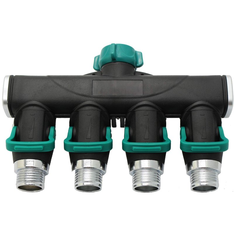 4 Way Garden Hose Splitter Metal Hose Connector, Easy Grip, Easy to Open