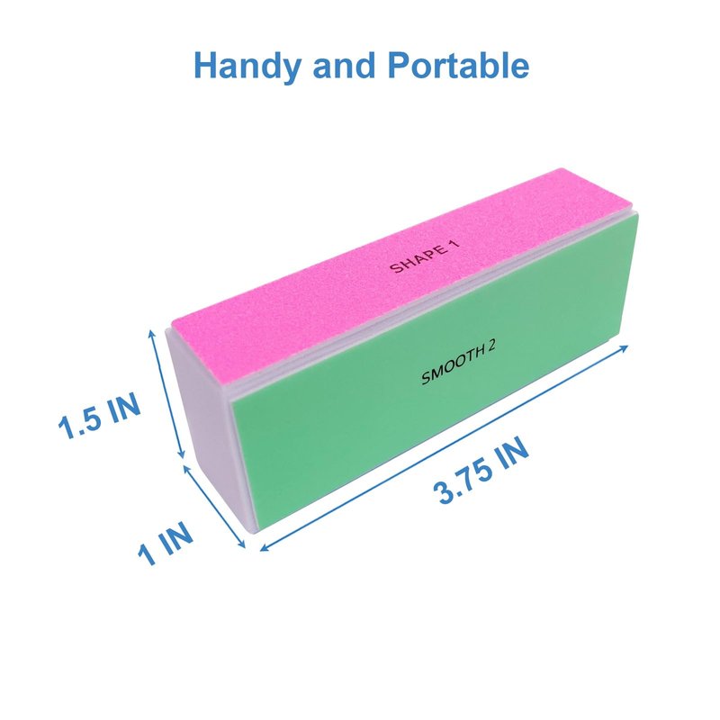 - Get Shiny Nails in Just Four Steps: Our 4 sided nail buffer block features one 120 grit pink side to file down and shape nails, one 240 grit on green side to smooth and even out nail surfaces, one 600 grit blue side to buff nails, and one 3000 grit white sides to polish and give you super glossy natural or acrylic nails; Use our nail buffer for natural nails or artificial nails for perfect results every time;