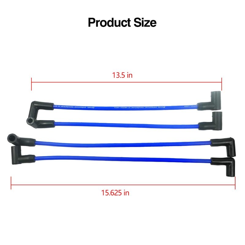 Ignition spark plug wire kit only for v4 engine, there are very few cases because everyone’s installation method is different, sometimes the spark plug length is too long, you only need to reduce a part according to your own installation requirements, will not affect the use of spark plug wires.