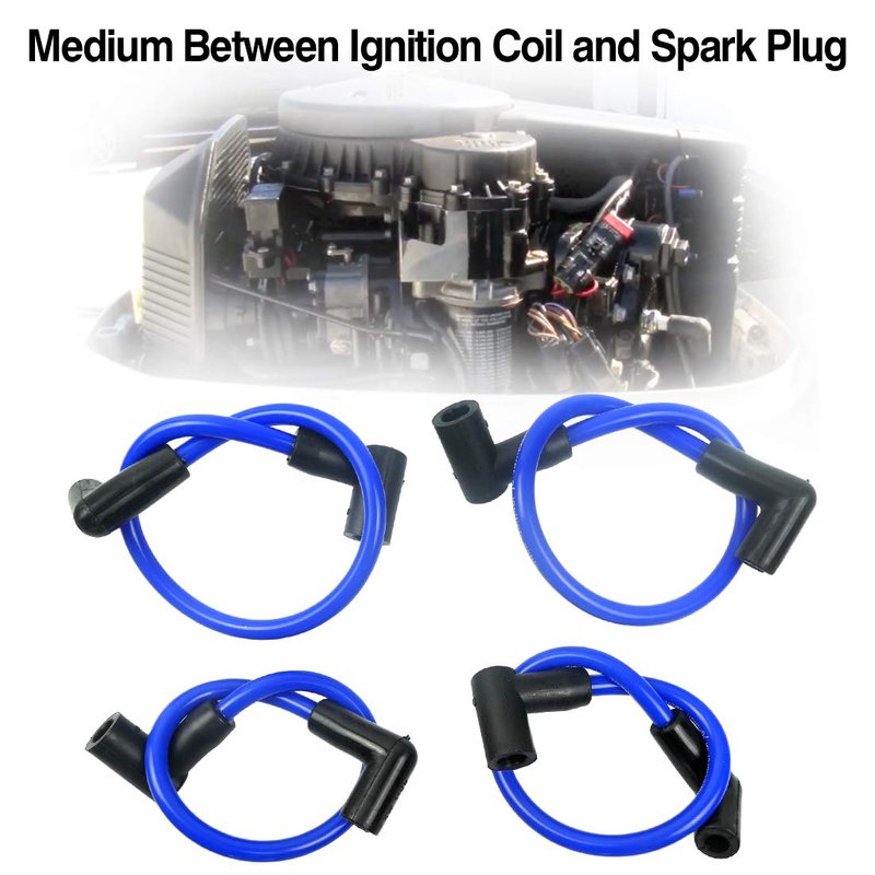 4 Wire Set Marine Spark Plug Wire Lead, Fits for Johnson Evinrude 90 115 HP, Outboard Engines OE Replacement 18-8839 9-28092, Premium Ignition Spark Plug Wire Set