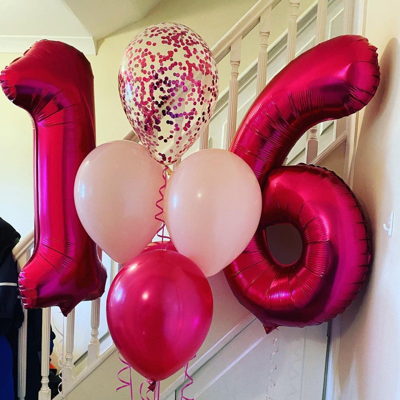 Packaged included:1 piece 40 inch Hot Pink 1 and 7 balloon,1 straw to inflate.