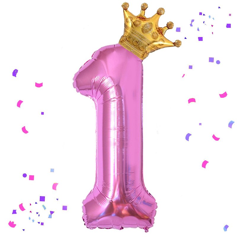 40 Inch Hot Pink Number 1 & Mini Crown Balloon for Birthday Party Decorations, 1st Birthday Party Decorations, Baby Shower Anniversary Balloons Decorations Supplies