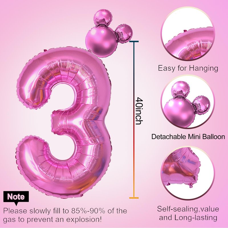 - Package includes: 1pcs 40inch hot pink number balloon; 1pcs mini mouse head balloon, 1pcs straw, 1 sheet glue dots,used to connect two balloons.