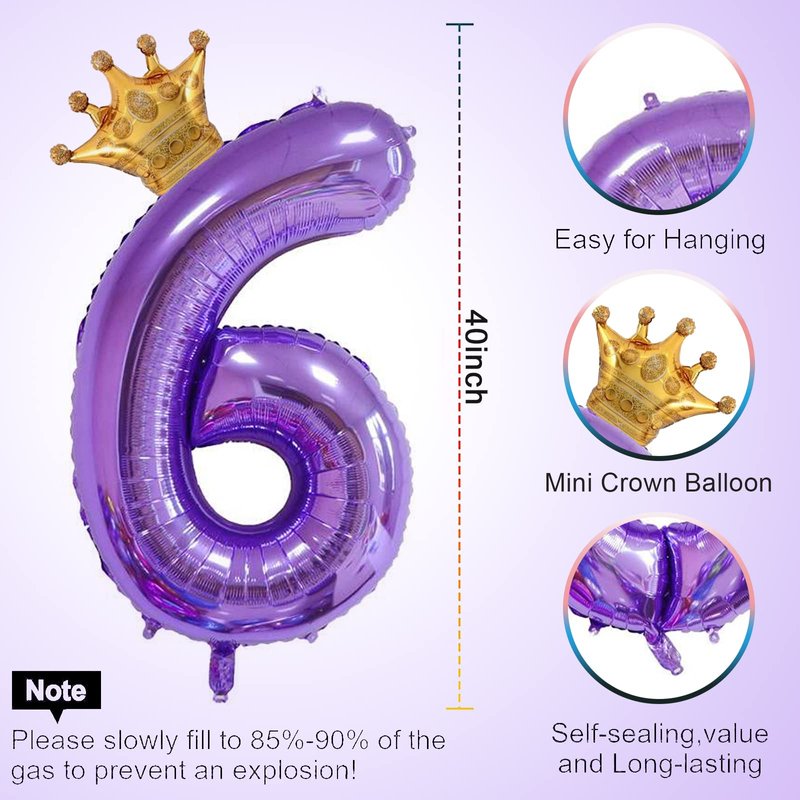 - Package includes: 1pcs 40inch purple digital balloons, 1pcs mini crown balloon, 1pcs straw, 1 sheet glue dots. (Used to connect crown balloons and digital balloons; you can also stick balloons anywhere you want to decorate)