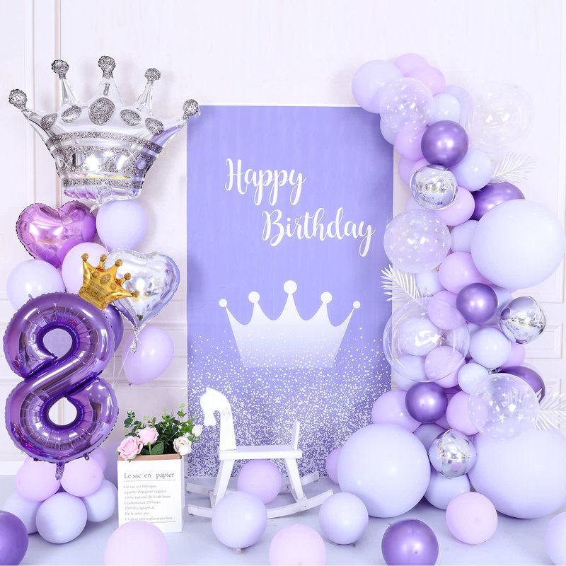 40 Inch Purple Number 8 & Mini Crown Balloon for Birthday Party Decorations, 8th Birthday Party Decorations Purple Theme Party Balloons Decorations Supplies