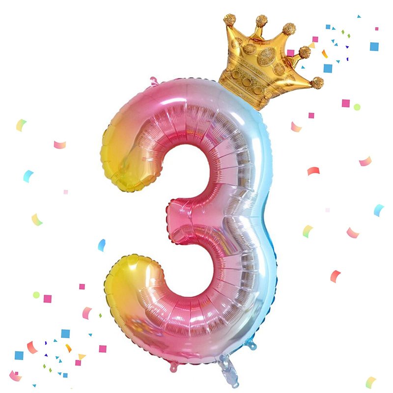 40 Inch Rainbow Gradient Number 3 & Mini Crown Balloon for Birthday Party Decorations, 3rd Birthday Party Decorations, Baby Shower Anniversary Balloons Decorations Supplies