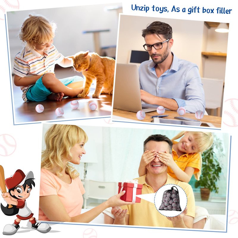 40 Pcs Mini Foam Baseballs, 1.18 Inch Baseball Stress Balls with Drawstring Mesh Bag Baseball Party Favors Soft Baseball Foam Toy Mini Foam Sport Ball for Anxiety Relief Relaxation Party Teens Adults