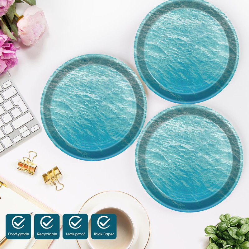 - 🌊Ocean Themed Design: The ocean wave-themed design of our party supplies adds a festive touch to your event decorations. Our paper plates and napkins are fade-resistant and well-printed, adding the perfect touch to any party.