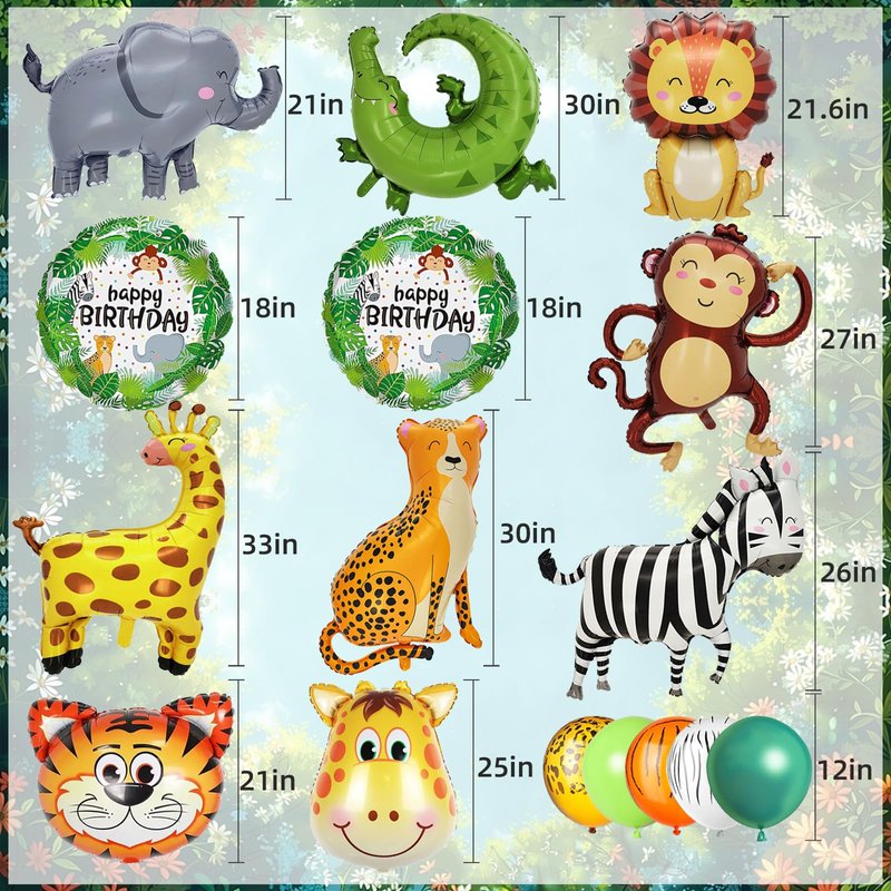 - 😺[After-sales Service]: We have been committed to bringing customers a good shopping experience. If you have any dissatisfaction after receiving our jungle party decorations, please do not hesitate to contact us, we will give you the most satisfactory answer. Hope you will like our safari jungle animal balloons. Note: Please slowly charge to 85%-90% gas to prevent explosion!