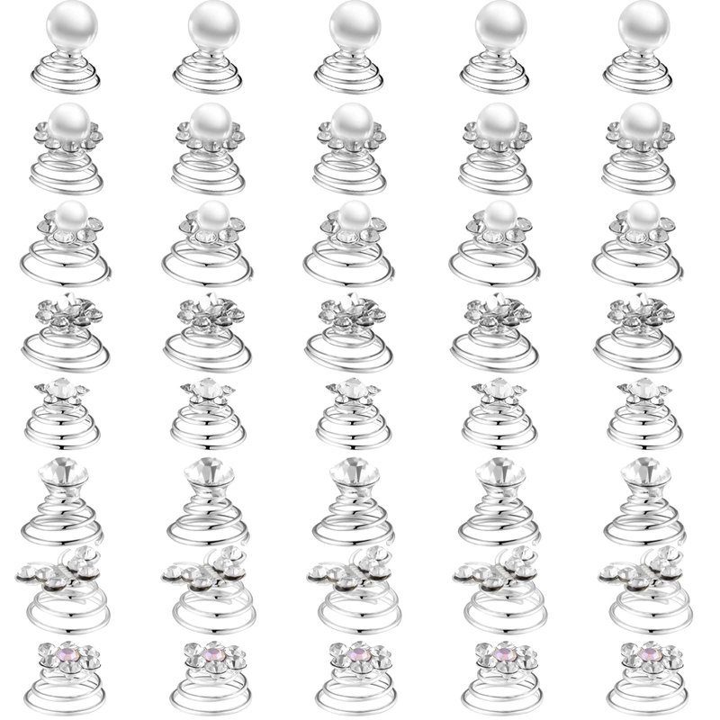 40 Pieces Spiral Hair Pins Swirl Hair Twists Coils Rhinestone Hair Spiral Jewelry Hair Pin Clip Accessories for Wedding Bridal Party Favors, 8 Styles