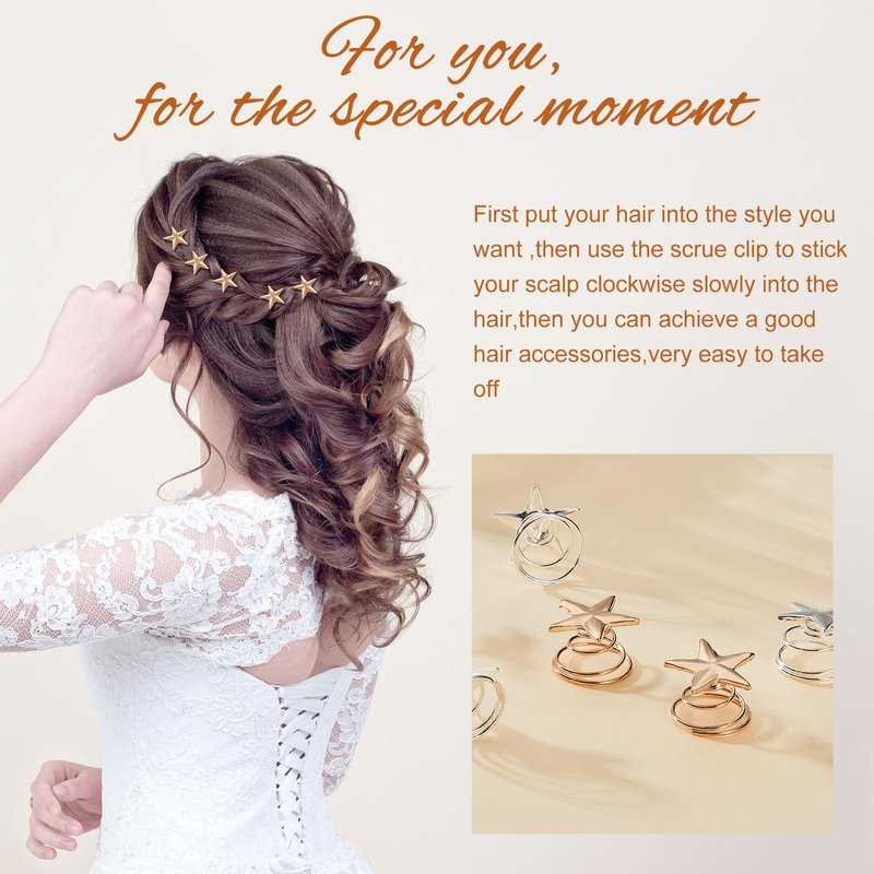 - Graceful outlook: our screw hair pins are crafted with a delicate star and a lovable spiral, help you make graceful and beautiful hairstyles, you will look shiny and charming under the light while wearing them