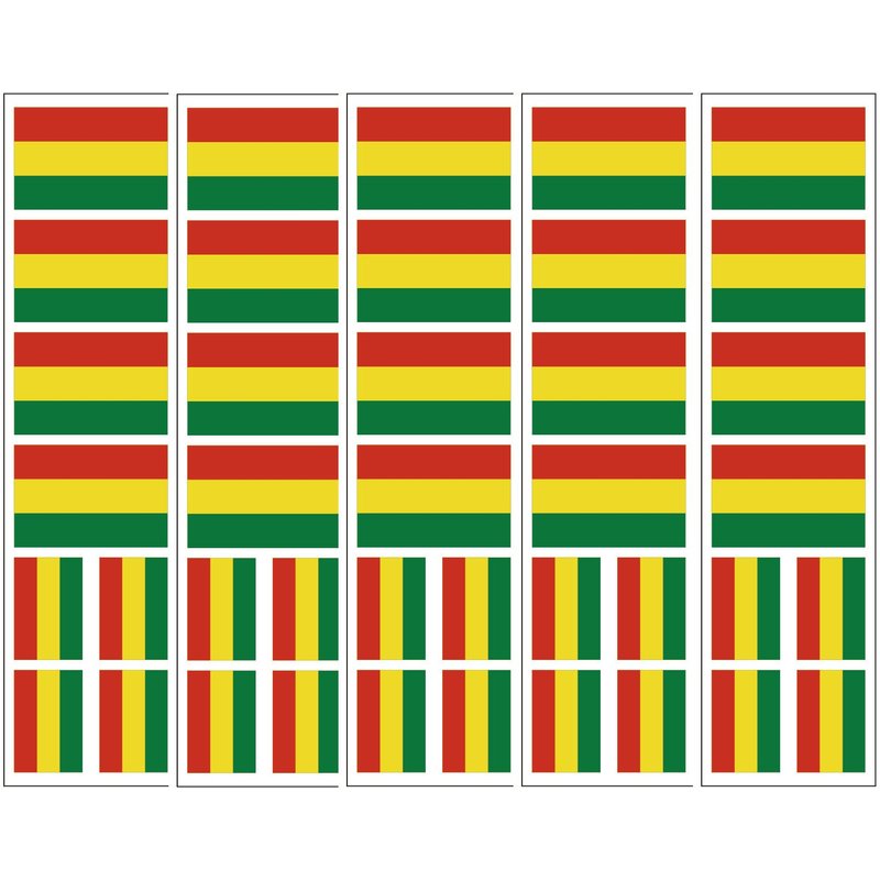 Each order = 5 sheets (40 temporary tattoos) featuring 8 Bolivia Flags (4 are 4.5 cm width, 4 are 3cm width.) Premium quality, rich colors last for days (depends on your skin). These are applied with water and are waterproof. Don't waste your money on small, poor quality tattoos that don't stick to your skin or only last an hour! Great for Bolivian parties!