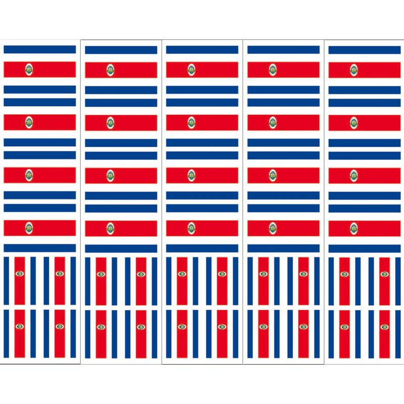 One order = 5 sheets. Each sheet features 8 Costa Rica Flags (4 are 4.5 cm width, 4 are 3cm width) so you receive a total of 40 temporary tattoos. Rich colors last for days (depends on your skin). These are applied with water and are waterproof. Great for Costa Rican parties! Note the images above may be "mirrored". The flag will be backwards on the sheet; when you apply it to your body the image will flip and display properly.
