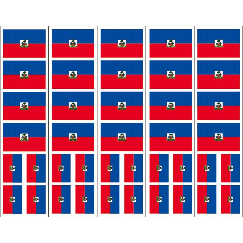 One order = 5 sheets. Each sheet features 8 Haitian Flags (4 are 4.5 cm width, 4 are 3cm width) so you receive a total of 40 temporary tattoos. Premium quality, rich colors last for days (depends on your skin). These are applied with water and are waterproof. Great for Haiti parties! Note the images above may be "mirrored". The flag will be backwards on the sheet; when you apply it to your body the image will flip and display properly.