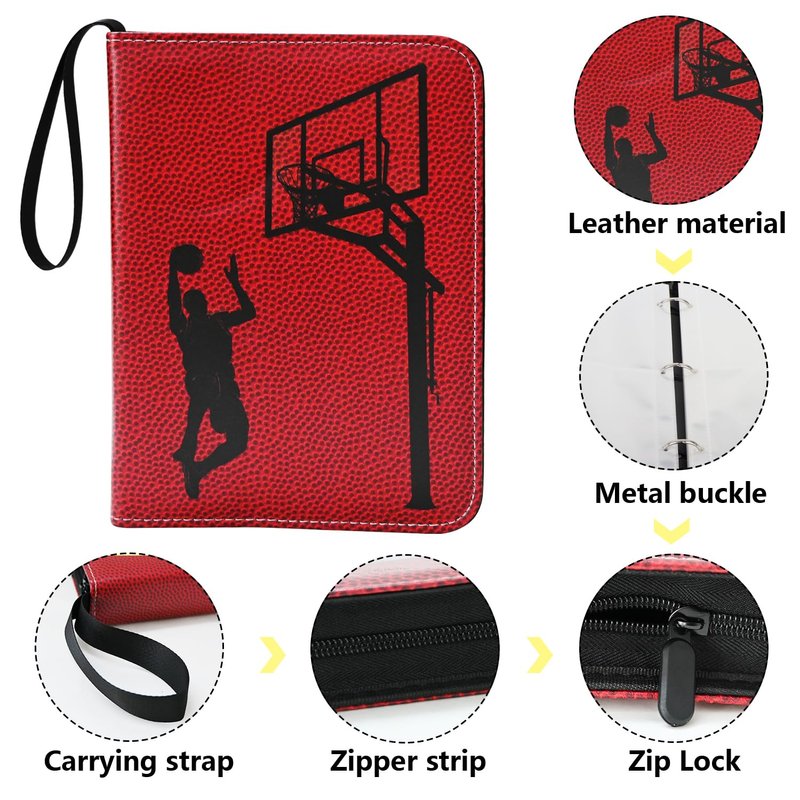 - 🏀High-Quality Material: The surface of the card binder made of Faux Leather can waterproof, dustproof and wear-resistant. Equipped with two-way strong metal zipper, which can effectively prevent the collected cards from falling.Removable metal clips also is convenient and fast allow you to add, remove and card pages.