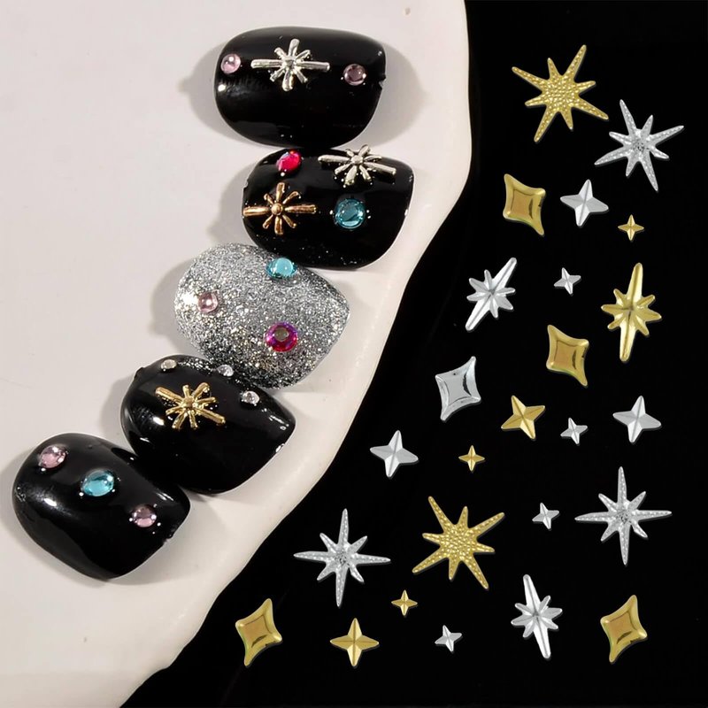 - Unique 3D Design: These 3D gold silver nail charms are designed to star shapes, with a combination of silver gold color, vivid and adorable, which can make your nails look more beautiful and fashionable.