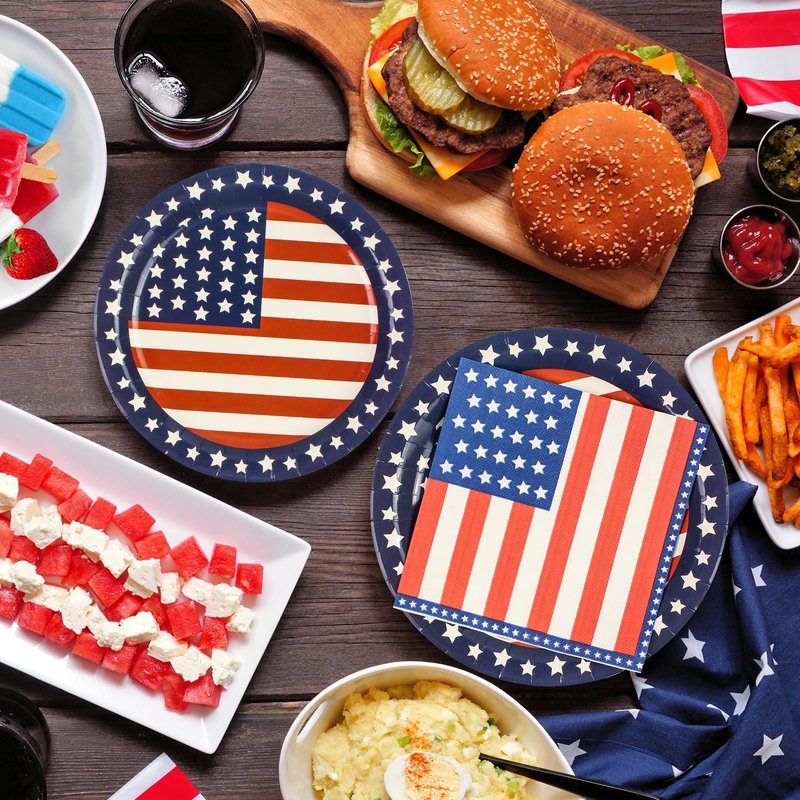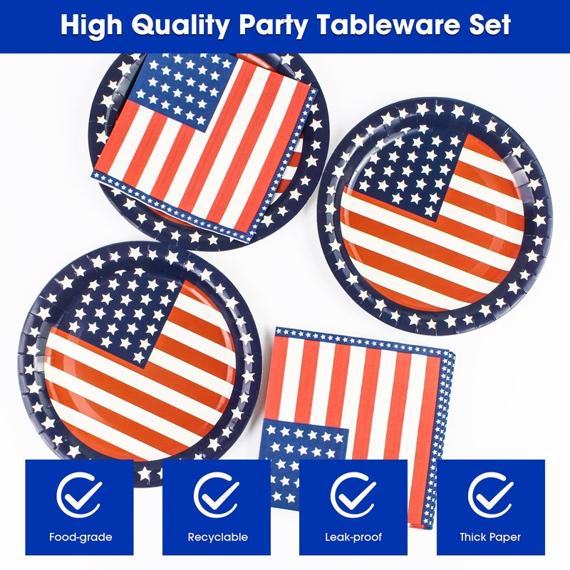 - 【Patriotic Party Supplies】These patriotic paper plates and napkins are perfect for 4th of July, Memorial Day, Veterans Day, and Labor Day parties, or any indoor/outdoor event that requires a patriotic touch.