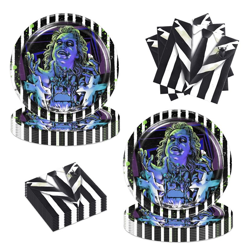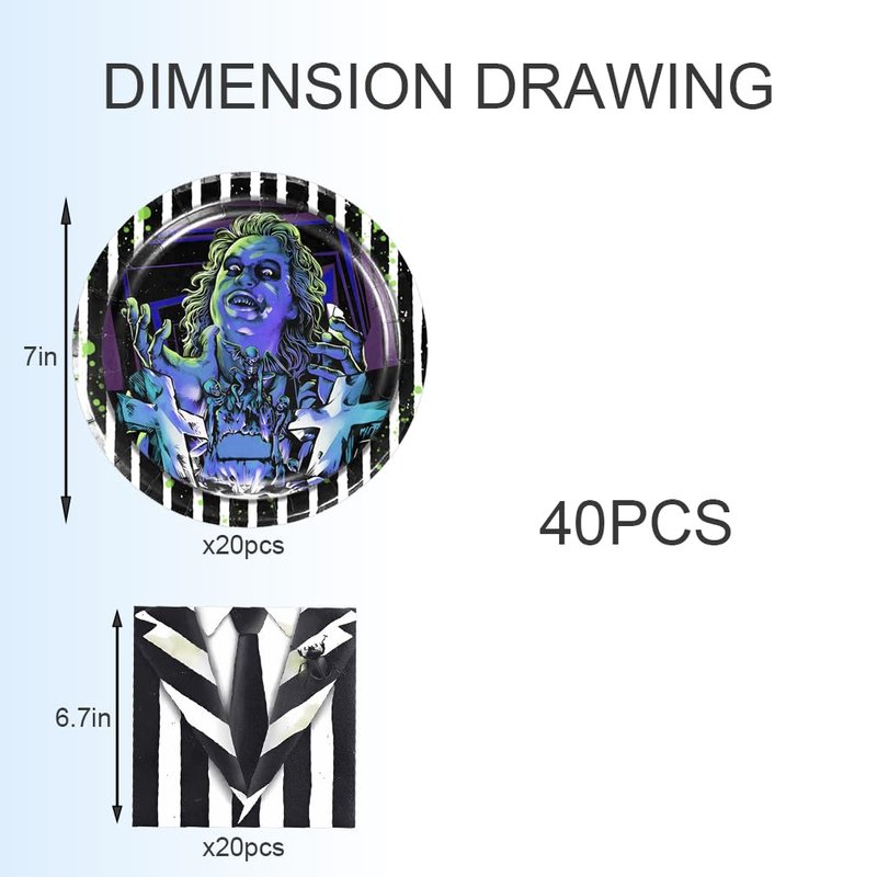 40pcs Beetlejuice Birthday Party Supplies,Includes 20 Paper Plates - 20 Napkin - Serves 20 Guest for Beetlejuice Birthday Party Decoration