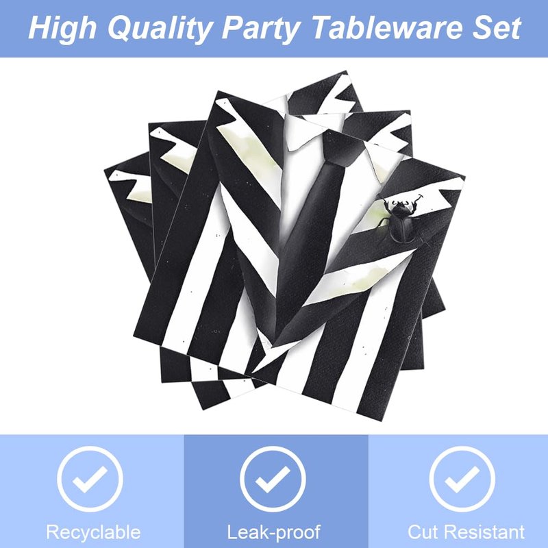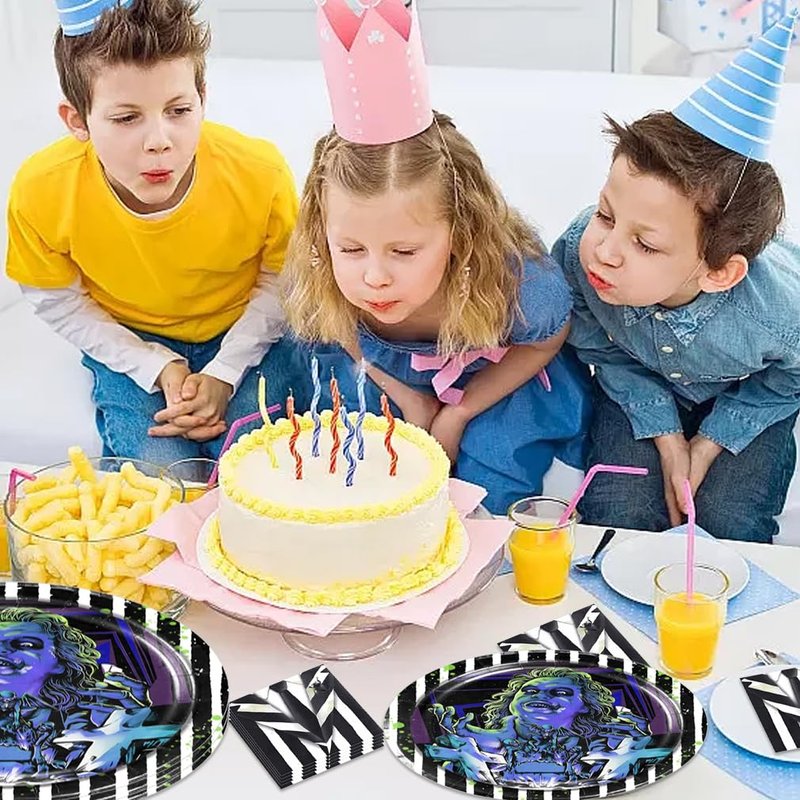 - Large Size: The size of the Beetlejuice party plates is 7 inches, and the napkins are 7 inches. Enough for you to hold various food and drinks, such as pizza, cake, fruit, snacks and drinks.