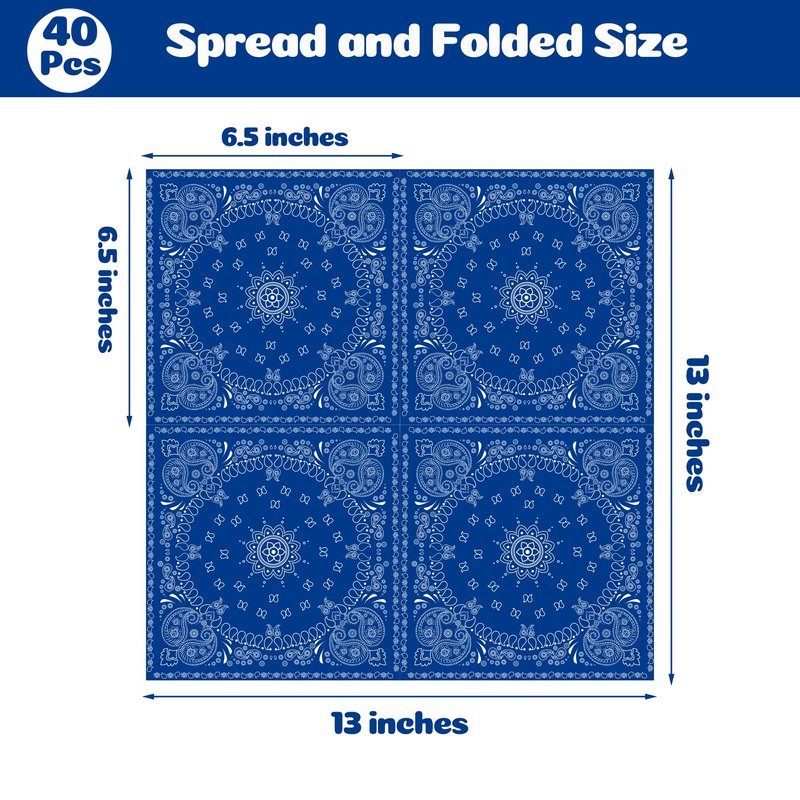 - Versatile Decorations: These Blue Bandana paper napkins are not just for dining. They can also be used as decorative accents, adding a pop of color and personality to your party tables, buffets, or photo ops. Let your creativity run wild!