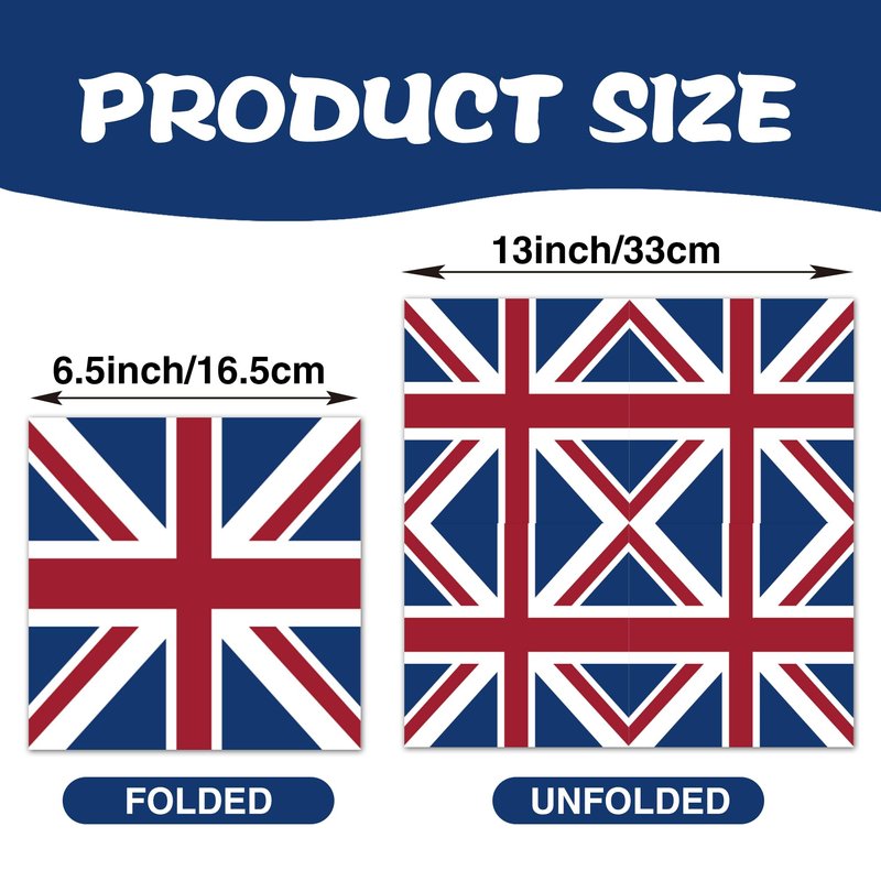 - 【Proper Size】:This British decorations paper napkins set includes 6.5 inches long by 6.5 inches wide folded, and 13 inches long by 13 inches wide when unfolded, this size makes for a nice experience, easy to carry and wipe, adding excitement to an unforgettable dining experience for you and your guests.