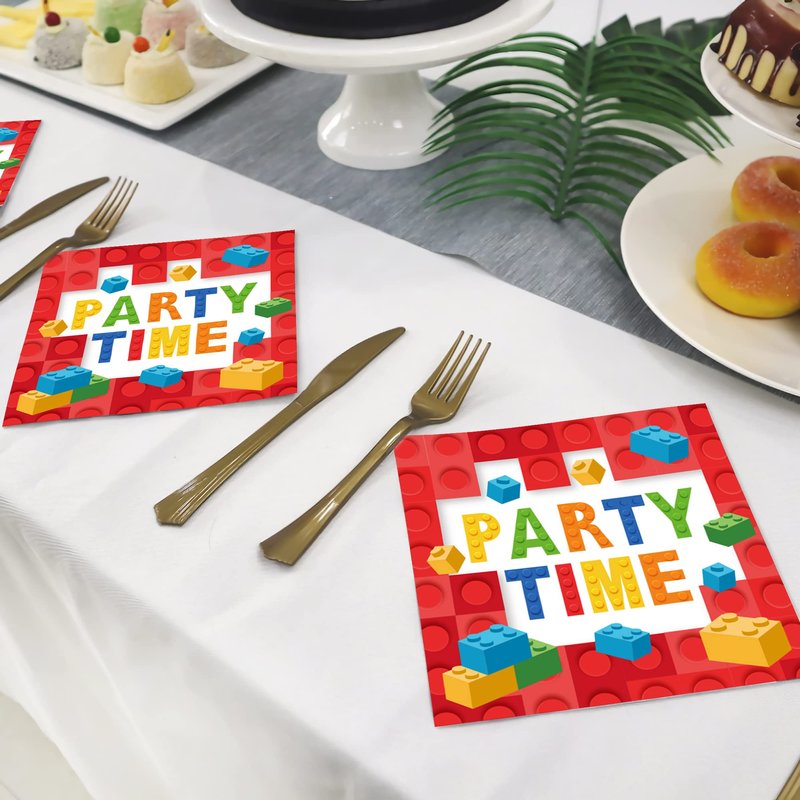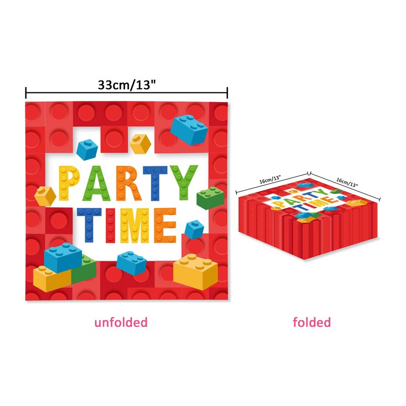 - 【Includes 40 Napkins】This Building Blocks Themed napkins set includes 6.5 inches long by 6.5 inches wide folded, and 13 inches long by 13 inches wide when unfolded. Each order brings 40 pre-folded napkins.