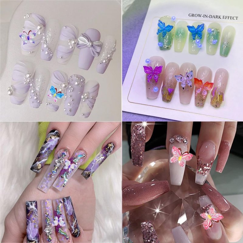 4. These colorful butterfly nail gems look shiny and exquisite, both sweet girls and cool girls can handle them.