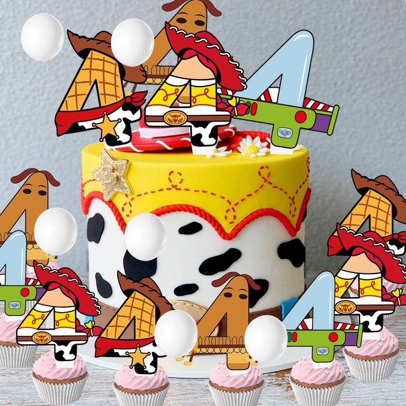 40pcs Cartoon Story Cupcake Toppers 4th Birthday for Boys Girls 4th Birthday Party Supplies Decorations