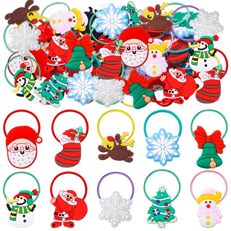 - Multicolour - The set contains 40 Christmas hair bands, hair ties in a variety of colors and styles. A variety of colors and styles to perfectly match your every outfit.