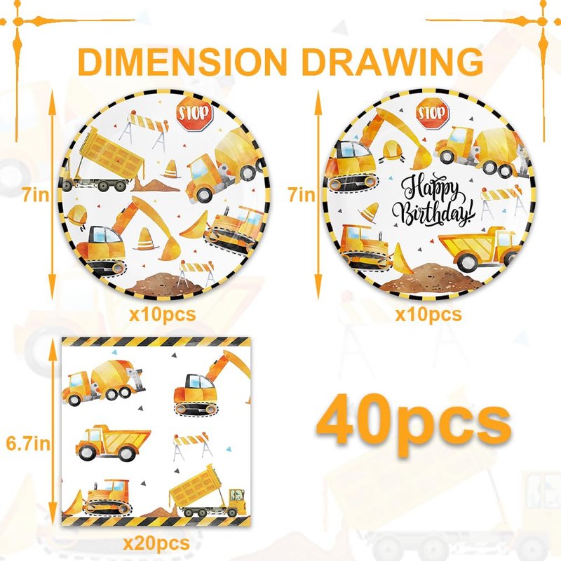 - 1.【Set includes】 plate 20pcs + 20pcs napkins , Totally 40 Pack.ideal for children Construction theme Party.