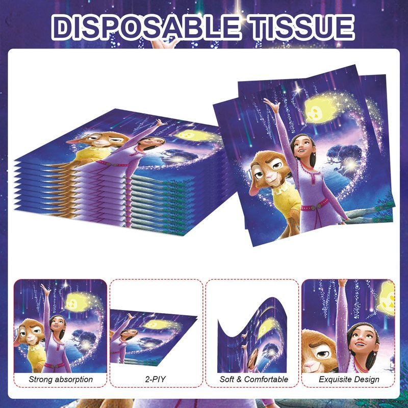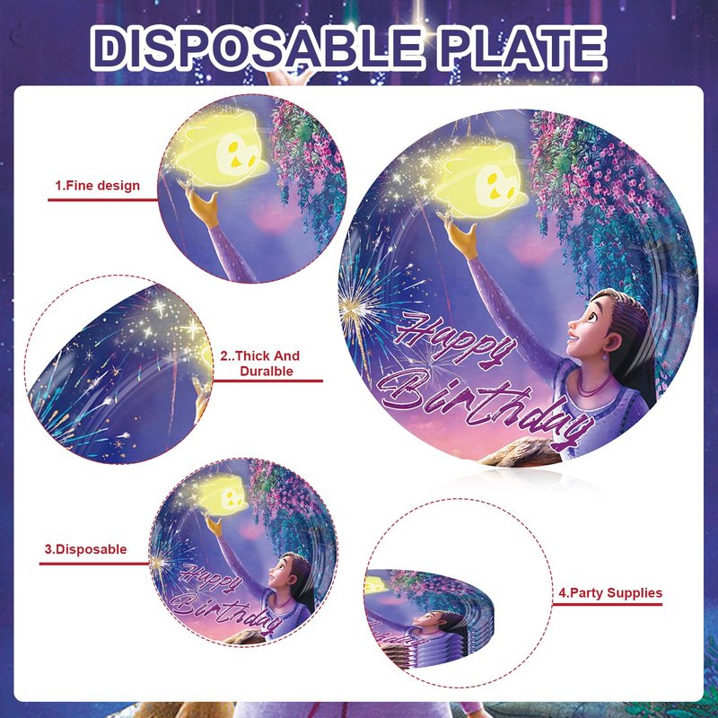 40pcs Dsney Wish Asha Birthday Party Supplies ,Wish Asha themed birthdays decorations,include 40pcs Disposable Napkins Paper Plates,for kids Birthday Party Supplies。