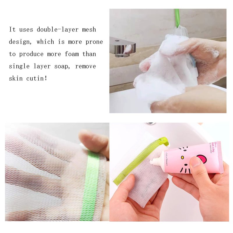 - Net soap bag is made of high quality nylon material, durable and soft. It uses double-layer mesh design, which is more prone to produce more foam than single layer soap, remove skin cutin.