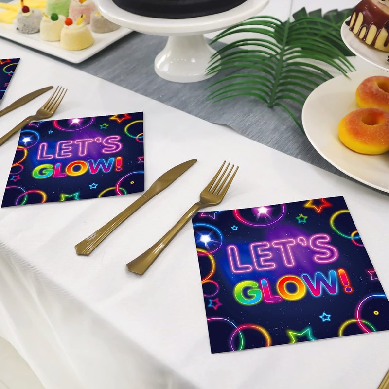 - 【Glow Party Napkins】These Papers cover with Let's glow patterns, perfect for decorating your Glow party supplies.