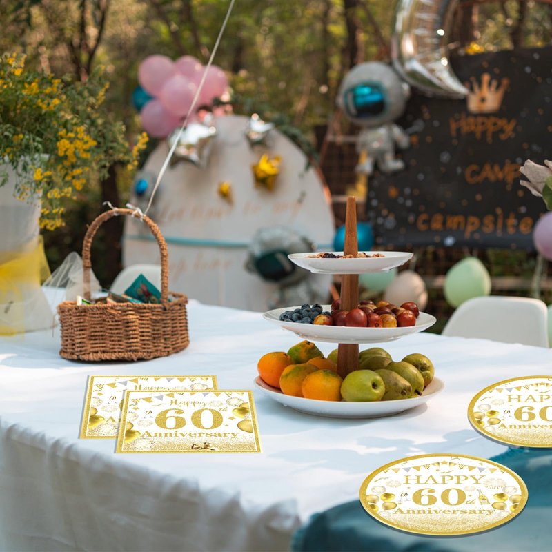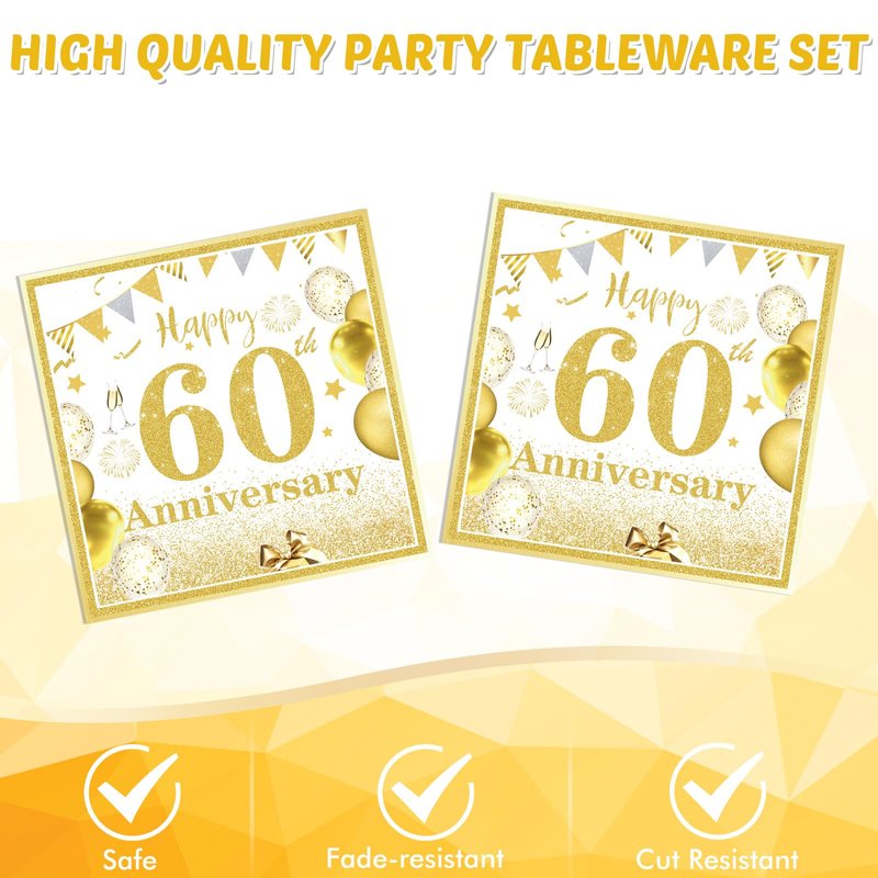 - What You Get:60th anniversary decorations include 20 pieces 60th anniversary plates,20 pieces 60th anniversary napkins, the design is full of beauty. It will make your table look great and leave a lasting impression for your guests, Making great memories.