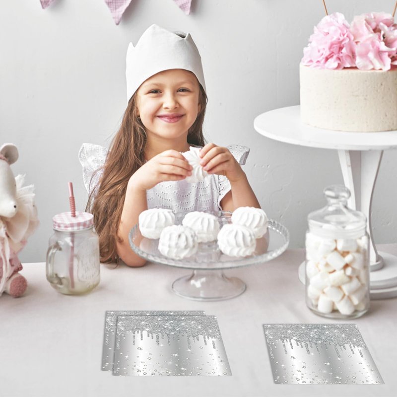 - High Quality: Silver napkins disposable are made of high-quality wood pulp material, soft and highly absorbent, no fragrance additives, food-grade ink is safe and healthy, and can be safely in contact with food.Silver party decorations will provide you with a comfortable dining experience for your guests.