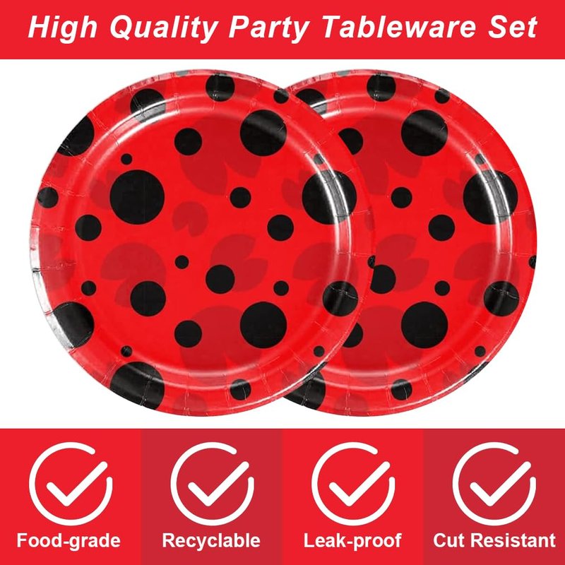 - - Unique design: Use red and black polka dots, borrow ladybug shell design pattern, unique design style, make the whole party tableware look unique, make the party become more meaningful!