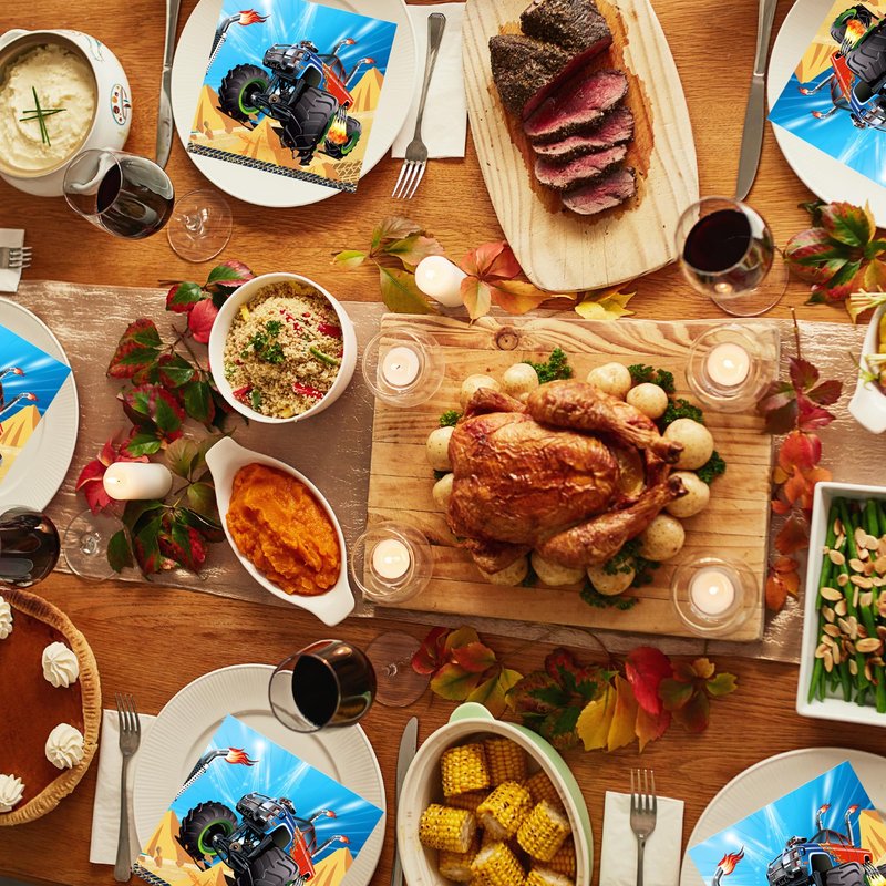 This Monster Truck decorations paper napkins set includes 6.5 inches long by 6.5 inches wide folded, and 13 inches long by 13 inches wide when unfolded, this size makes for a nice experience, easy to carry and wipe, adding excitement to an unforgettable dining experience for you and your guests.