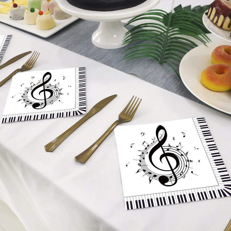 - 【Includes 40 Napkins】This Music Note Theme napkins set includes 6.5 inches long by 6.5 inches wide folded, and 13 inches long by 13 inches wide when unfolded. Each order brings 40 pre-folded napkins.