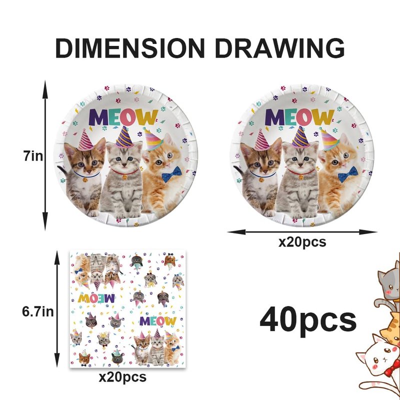 40pcs Pet Cat birthday Party Supplies,include 20 dessert plate, 20 Napkin,For boys and girls birthday party supplies,Used for Pet Cat birthday Party Decoration (cat)