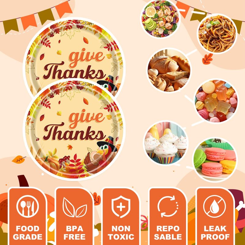 All of our Thankgiving Day plates and napkins are made of quality paper, non-toxic, no smell, heat-resistant and durable. The pattern and color are well-printed and fade-resistant to provide you with a party full of happy atmosphere.