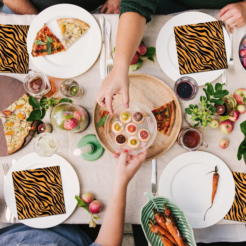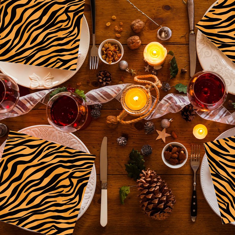 - 【Proper Size】:This Tiger Print decorations paper napkins set includes 6.5 inches long by 6.5 inches wide folded, and 13 inches long by 13 inches wide when unfolded, this size makes for a nice experience, easy to carry and wipe, adding excitement to an unforgettable dining experience for you and your guests.