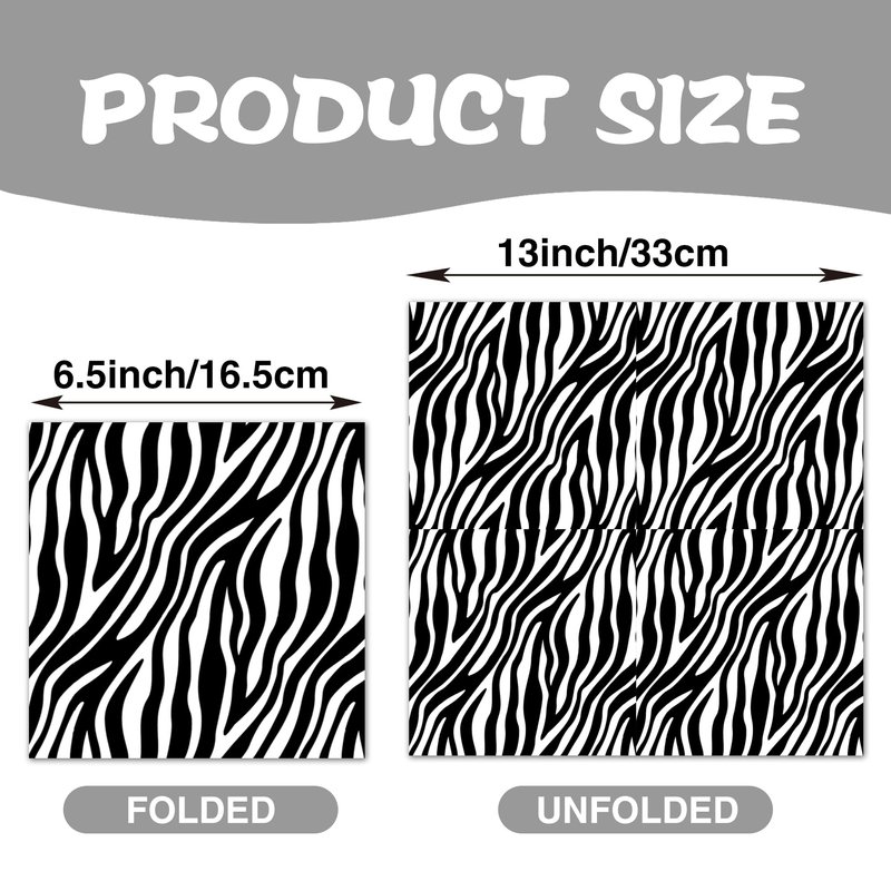 - 【Proper Size】:This Zebra Print decorations paper napkins set includes 6.5 inches long by 6.5 inches wide folded, and 13 inches long by 13 inches wide when unfolded, this size makes for a nice experience, easy to carry and wipe, adding excitement to an unforgettable dining experience for you and your guests.