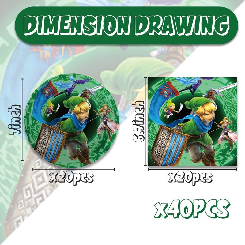 40Pcs Zeldas Party Supplies include 20 plates, 20 napkins for the Zeldas birthday party decoration