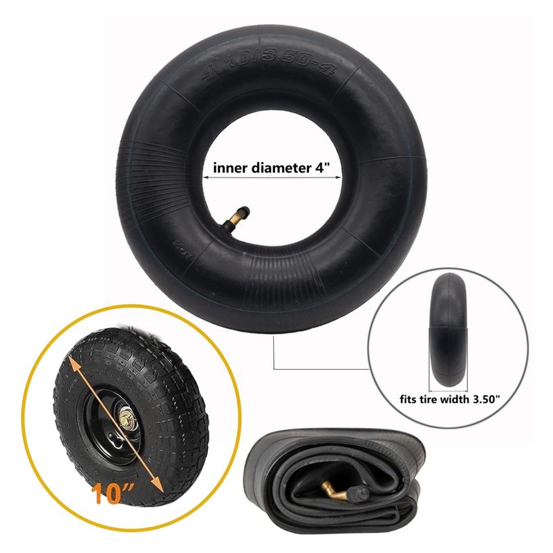 - 4.10/3.50-4 inches replace the inner tube made of high-quality wear-resistant rubber. The thickened process makes it more durable and tear-resistant. Cutting machine, tractor, garden car, flat -handed cart, courtyard trailer, hand cart, truck, generator, snow blower, pressure padding, air compressor, wood core machine, wood shovel and more.