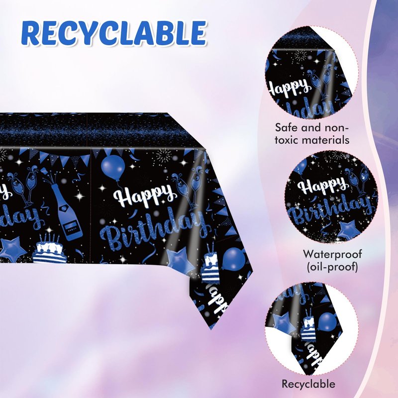 - Save Time: You can have a relaxing and enjoyable black and blue themed birthday party, but you don't have to worry about spending a lot of time cleaning up after the party. You can simply wrap birthday party decorations inside the tablecloth and throw them in the rubbish bin.
