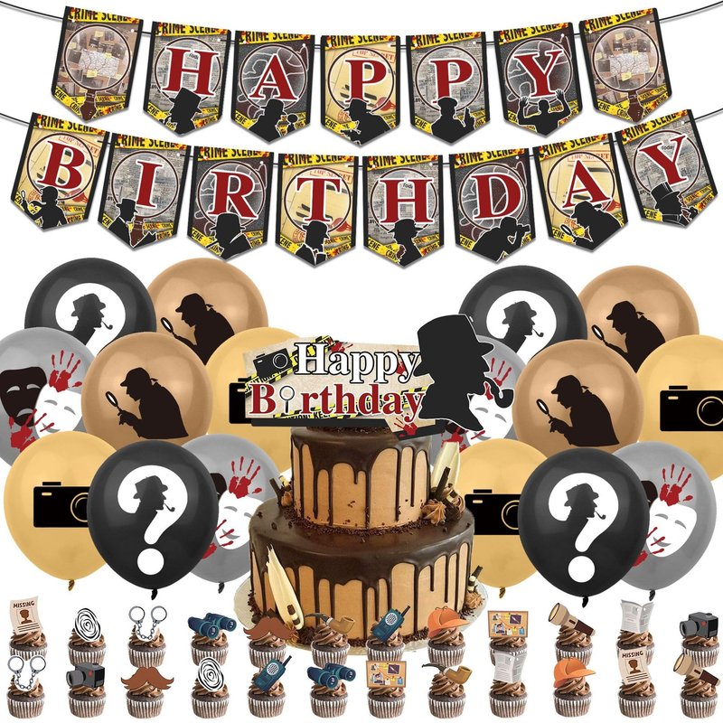 - Detective Party Supplies Set: This Set Includes Everything You Need To Create An Amazing Detective-Themed Party. You Will Receive 42 Pcs Detective Party Kits, Includes 1 Set Happy Birthday Banner, 1 Pcs Cake Topper, 24 Pcs Cupcake Topper, 16 Pcs Balloon.