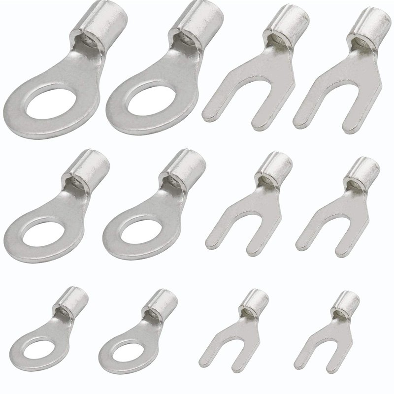 - Ring Terminal & Fork Connector Kit Material: T2(99.9% Purity) Copper.As a wire crimp connector, it has strong conductivity and is not easy to corrode