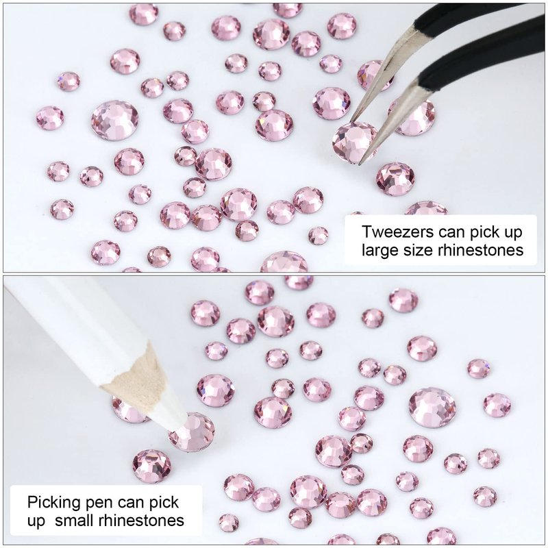 • 💎Use tweezers and Picking Pen gem picker to pick rhinestones, There is no glue on the bottom, additional nail gel is required, or other professional glue for makeup or nails. Can use E6000 super glue to fix on crafts, art decoration. not hotfix.