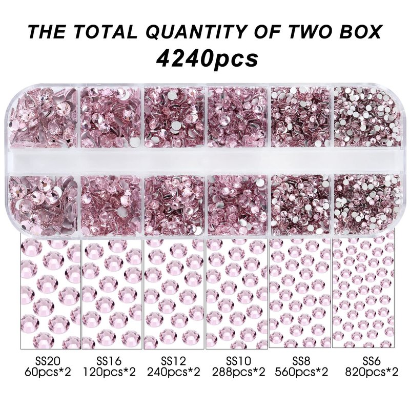 4240Pcs Flatback Pink Rhinestones Glass Crystal...